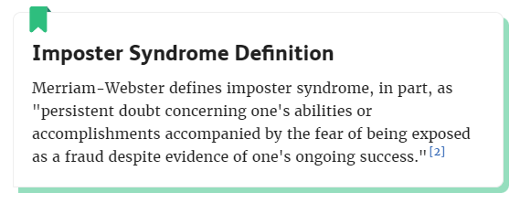 At it's core, imposter syndrome is an inability to recognise and assess your own competence. You attribute success to other external factors outside of your control, berating your own performance because you take no ownership in the things that you did.