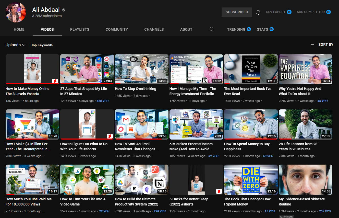 Probably my favourite Youtuber of all time, purely for the productivity lessons, how relatable the content has felt to me personally, and the similarity in the kinds of hobbies I pursue. His videos are the reason I started a blog, have been thinking about investing and am now seriously considering expanding to other platforms like YouTube, and they've also caused me to develop a ton of other hobbies and pick up new skills which have massively changed my life. The amount of free value that he provides on this channel, to students especially, is absolutely insane.