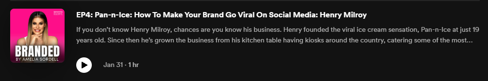 A really recent find for me but one of the podcasts I dove into headfirst and was immersed by throughout - based on building a brand from the ground up and how various creators went about it. I'm only a few episodes in but I can already tell that this is going to have a lot of value for me as I continue with my blog and other projects. The first episode I listened to was the one shown below, about a 19 year old who built a massively successful ice cream business just off the back of dropping out of university in the middle of his degree.