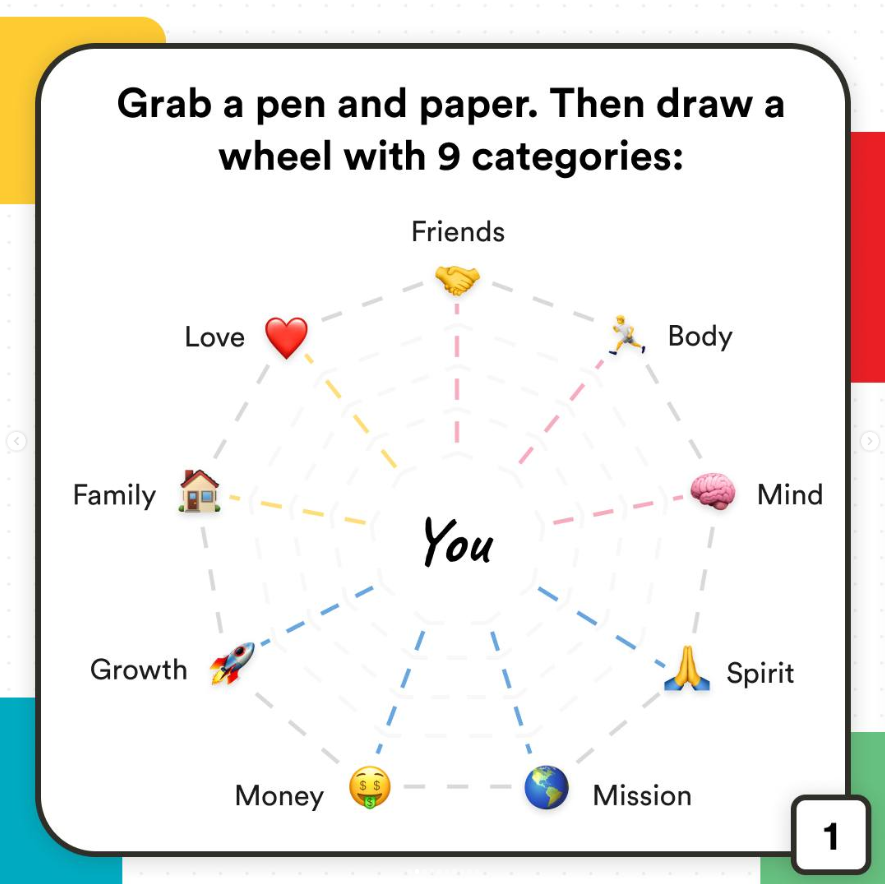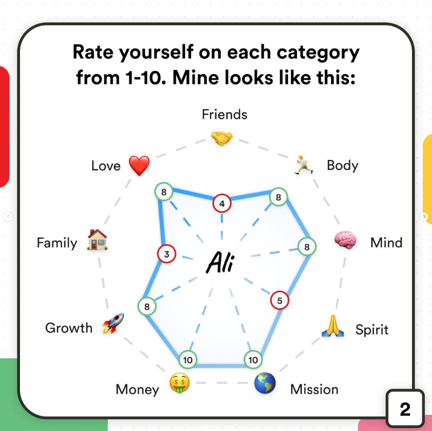 It's a simple exercise that asks you to outline 9 key areas of your life, and rate yourself on your performance in them. It can be really helpful when it comes to thinking about what you want to improve on in the coming year.