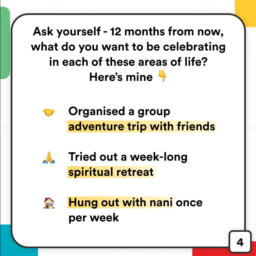 - Friends - spending more time with the people I care about and focusing on building deeper connections